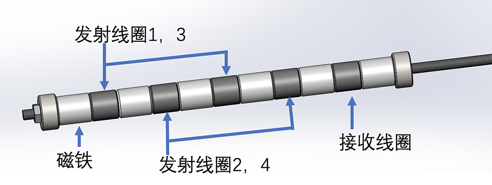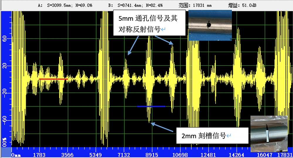 使用一种长距离传输的导波进行螺旋管的检测,并开发一款对针管径的内置组合探头实现内探,并开发相应软件进行不同材料的声速与距离标定。